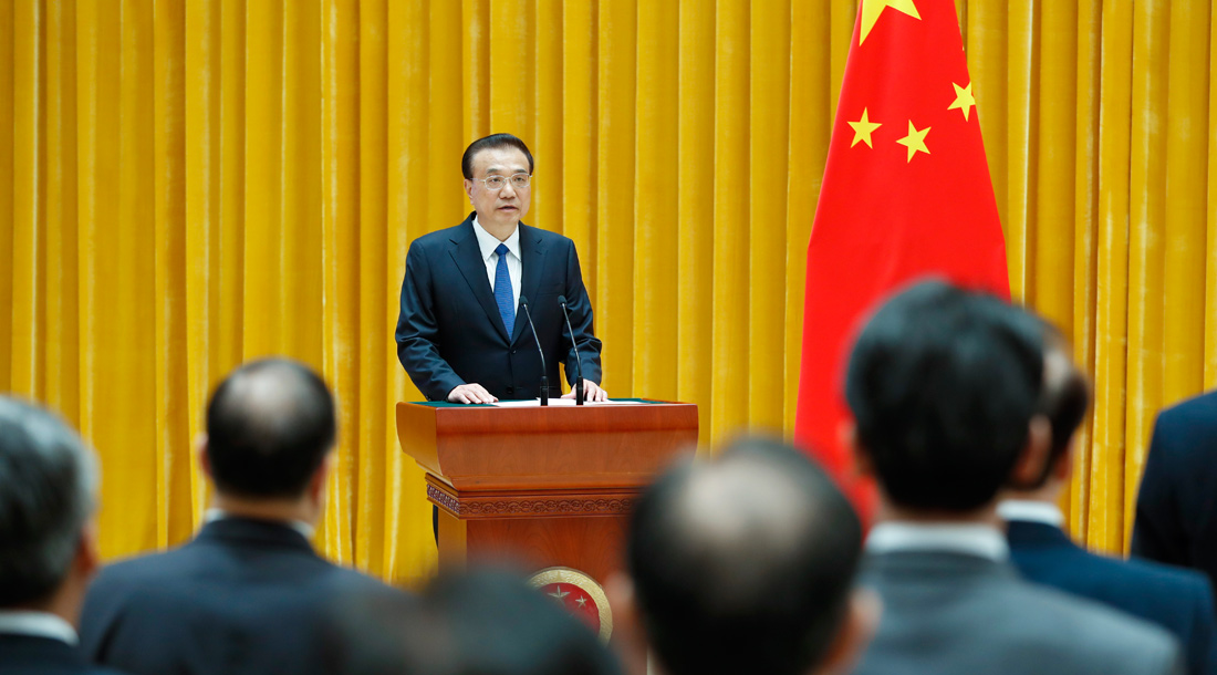 宣誓后,李克强希望大家以责履誓、以行践诺。他要求,要坚持以习近平新时代中国特色社会主义思想为指导,依宪施政、依法行政。一要严格依法履职,把尊法学法守法用法化为自觉行动,不断提高运用法治思维和法治方式推动工作的能力,推进法治政府建设。二要倾心为民造福,坚持以人民为中心的发展思想,围绕市场主体和民生急需制定实施各项政策,为市场主体纾困助力,更好解决民生痛点难点问题。三要奋力实干担当,善用改革开放的思路和办法,秉持务实精神和作风,竭力勤勉任事,持续攻坚克难,不断创造人民满意的新业绩。四要守牢清廉底线,明纪自守、怀德自重,节用裕民、清白做事。不负党和人民重托,为建设富强民主文明和谐美丽的社会主义现代化强国不懈奋斗。