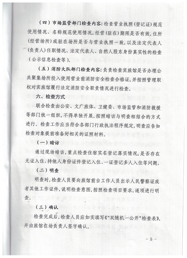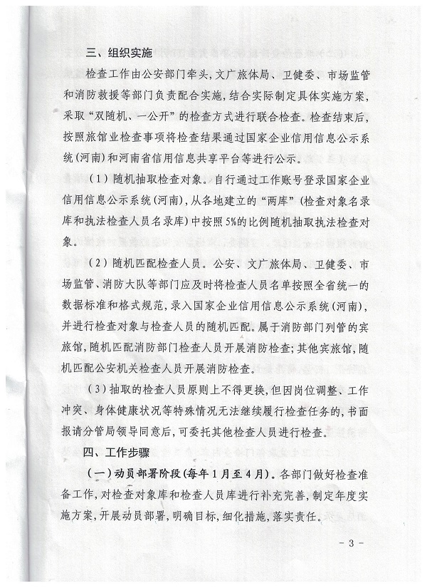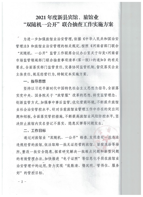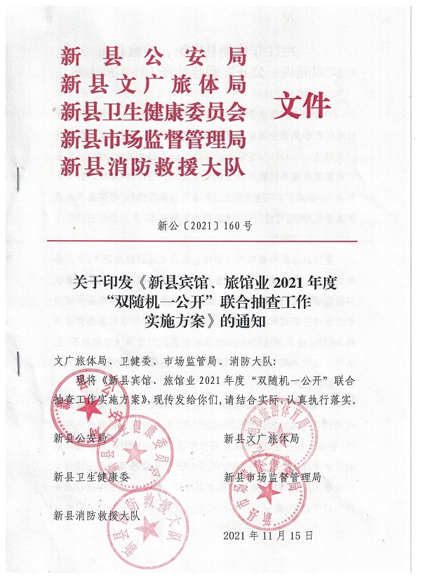 新县公安局“双随机一公开”宾馆、旅馆业跨部门联合抽查计划